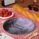 Ein individueller Teller mit Happy Halloween in gotischer Blakkletter und ein unheimlicher Halloween-Himmel mit unangenehmen Bäumen entlang einer Spuk, dunklen Straße, gotischen Raben und einem bewölkten Vollmond mit lila Nebel. Passen Sie es an, um Schriftart zu ändern, Elemente zu verschieben und sogar Ihr Design für später retten.