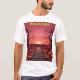 Custom Halloween Sunset T - Shirt Dies ist ein benutzerdefinierter Halloween-Weißer T - Shirt. Das Design entstand mit einer generativen Kunst, die mit einer hübschen rosa Halloween-Naturszene mit Kürbisbissen besticht. Der T - Shirt hier ist weiß. Sonnenuntergang ist oben auf dem Bild in Goldtext. Sie können den Text oder das Bild mit der Schaltfläche Anpassen ändern.