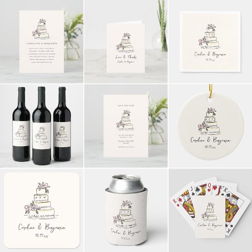 Sketched Blush and Cream Floral Cake Wedding SuiteDesignt von Opal Ellery