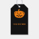 Custom Happy Halloween Gastgeschenk geschnitzte Kürbisschenkel Tags. Kürbiskopf-Design in Schwarz-Orange-Kürbislaterne mit Vintager Typografie-Vorlage. Fügen Sie Ihren personalisierten Dankeschön Text, Datum und Namen hinzu. Heimwerkerartikel und Zubehör für Geburtstagsthemen, Babydusche, Kostüm-Party, Hochzeit usw. im Party. Machen Sie Ihre eigenen hängenden Etiketten. Ändern Sie die Menge, um den billigen Schüttgutpreis zu erhalten. Spaß für Erwachsene und Kinder. JackOLantern Kürbis Gesicht Schnitzlogo.