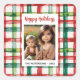 Custom Happy Holidays Fun Plaid Red Green Photo Quadratischer Aufkleber
