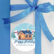Dieser hübsche, individuell gestaltete Anwesen-Feiertagsgeschenkaufkleber ist perfekt für ein Immobilienunternehmen im Norden geeignet. Ein schönes Zuhause zeichnete eines schneegesäumten Hauses, das aus dem Kamin neben den grünen Bäumen kommt. Ein Immobilienmakler kann Happy Holidays in kursiver Schrift behalten oder mit seinen eigenen Frohen Festtagen für Weihnachten anpassen.