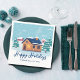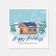 Diese schöne original Anwesen-Party-Serviette ist perfekt für eine Immobilienfirma im Norden. Ein schönes Zuhause zeichnete eines schneegesäumten Hauses, das aus dem Kamin neben den grünen Bäumen kommt. Ein Immobilienmakler kann Happy Holidays in kursiver Schrift behalten oder mit seinen eigenen Frohen Festtagen zu Weihnachten anpassen.