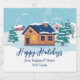 happy holidaysreal estate companycorporate christmas partywinter house drawingrealty agentbusiness marketingrealtorsnow covered treesholiday favorblue monogram