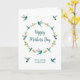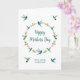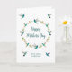 Niedliche Boho-individualisierbare Muttertagskarte mit einem Kranz aus rosa Schwanzvögeln, Kammervögeln mit Violetear und Kammervögeln mit breiten Blättern mit Blumenelementen auf weißem Hintergrund. Der Stil und die Größe des Schriftartes können durch Klicken auf "Design bearbeiten" geändert werden. Die Innenseite wird für Ihre eigene handgeschriebene Nachricht leer verlassen.