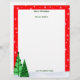 Nutzen Sie dieses anpassbare Weihnachtsfest, um in diesem Jahr Ihren Weihnachtsbrief zu senden. Dieses Urlaubsbriefkopf verfügt über niedliche Weihnachtsbäume, eine rote Sternengrenze und eine individuelle Unterschrift, die viel Platz für Ihre persönliche Nachricht bietet. Der Standard-Kopftext lautet "Frohe Weihnachten". Sie können den Kopf-, Körper- und Signaturtext auf der Produktseite anpassen oder entfernen. Stellen Sie sicher, dass Sie in unserer fantasievollen Baumweihnachtskollektion die koordinierenden Umschläge, die individuellen Porto-Briefmarke und Adressetiketten ausfüllen.