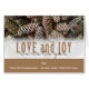Rustikale Kiefernkiefern versetzen Set in dieses klassische, elegante Design, zusammen mit einer individuellen Typografie, die Liebe und Freude wünscht. Bereit für Sie, um mit Ihrem eigenen Text zu personalisieren.
