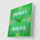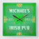 Custom Home Bar Irish Pub Green Wood with Name Quadratische Wanduhr