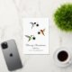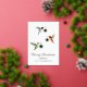 Niedliche Weihnachtskarte mit einem rubingebeutelten Kolibri, einem aufregenden Kolibri und einer Anna-Kolibris mit Sternschmuckstücken. Die innere Botschaft lautet: "Wir wünschen euch eine Saison voller Licht und Lachen für euch und eure Familie." Der Text kann für Ihre eigene handgeschriebene Nachricht geändert oder gelöscht werden.