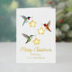Niedliche Weihnachtskarte mit einem rubingebeutelten Kolibri, einem aufregenden Kolibri und einer Anna-Kolibris mit Sternschmuckstücken. Die innere Botschaft lautet: "Wir wünschen euch eine Saison voller Licht und Lachen für euch und eure Familie." Der Text kann für Ihre eigene handgeschriebene Nachricht geändert oder gelöscht werden.