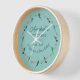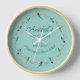 Perfektes Geschenk für Bäcker und Kolibri-Liebhaber! Diese hübsche Wanduhr ist mit einem Aquarellkranz von Kolibris und botanischen Ästen auf blauem Hintergrund und dem Sentiment auf der Uhr, das lautet "Glück ist Zuhause gebacken". Der Text kann geändert werden, der Stil des Schriftartes, die Farbe des Schriftartes und der Stil des Schriftartes können Sie auch ändern, indem Sie auf "Bearbeiten mit dem Designwerkzeug" klicken. Alle Hummingvogelbilder werden von C. Dobbins aus originalen Aquarellen aufgenommen.