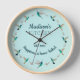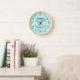Perfektes Geschenk für Bäcker und Kolibri-Liebhaber! Diese hübsche Wanduhr ist mit einem Aquarellkranz von Kolibris und botanischen Ästen auf hellblauem Hintergrund und dem Sentiment auf der Uhr, das lautet "Glück ist Zuhause gebacken". Der Text kann geändert werden, der Stil des Schriftartes, die Farbe des Schriftartes und der Stil des Schriftartes können Sie auch ändern, indem Sie auf "Bearbeiten mit dem Designwerkzeug" klicken. Alle Hummingvogelbilder werden von C. Dobbins aus originalen Aquarellen aufgenommen.