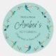 Dieser hübsche, individuell anpassbare Aufkleber ist mit einem Aquarellkranz von Kolibris und botanischen Ästen auf aquablau gehalten. Die Größe des Schriftartes und der Stil des Schriftartes können Sie ändern, indem Sie auf "Bearbeiten mit dem Entwurfswerkzeug" klicken. Alle Hummingvogelbilder werden von C. Dobbins aus originalen Aquarellen aufgenommen.