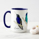Custom mug for hummingbird lovers featuring hand-painted Velvet-purple Coronet Hummingbirds, a Mexican Violetear and a Long-billed Start-throat Hummingbird. Personalize with your name. The font style and font size can be changed by clicking on "Edit design."