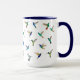 Unique custom mug for hummingbird lovers featuring several species of hummingbirds, such as a Fiery-throated Hummingbirds, Golden-tailed Sapphire and Sapphire-bellied Hummingbirds, Mexican Violetear Hummingbirds, Coronet and Glittering Starfrontlet Hummingbirds and an Anna's Hummingbird. Images taken from original watercolor paintings by Christiane Dobbins.