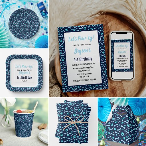 Custom Hund Birthday Blue Paw Print Puppy Pet Einladung