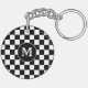 Custom Initial, Black White Checkered Keychain Schlüsselanhänger