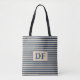 Custom Initial Blue/Vanilla Stripes Tote Beutel