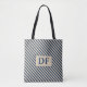 Custom Initial Blue/Vanilla Stripes Tote Beutel