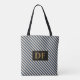 Custom Initial Blue/Vanilla Stripes Tote Beutel
