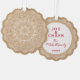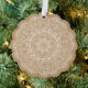 Zeitgenössische Weihnachtssaison Zierkarte mit Elfenbein cremefarbenem Mandala-Kranz auf einem rustikalen Imitat braunes Kraftpapier Textur. Mit Option und Raum, um den Text, Familienname und Jahresdatum, und fügen Sie ein persönliches Foto Ihrer Wahl auf der Vorderseite, und eine anpassbare Saison Grußmeldung auf der Rückseite der Karte.
