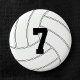 Custom Jersey Number Round Volleyball Button Button: Ein runder schwarz-weißer Volleyballknopf mit einem Textfeld, mit dem Sie ihn mit Ihrer Lieblings-Jersey-Nummer oder einem anderen Text, wie Initialen oder Schulbriefe, personalisieren können. Sie können auch den Schriftart Typ, Größe und Farbe ändern, indem Sie auf die Schaltfläche "Anpassen" klicken und die Einstellungen ändern.