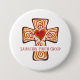 Zeigen Sie stolz Ihr Vertrauen mit diesem anpassbaren Button zum Thema Jesus, das perfekt für Ihre Kirchengruppe oder Ihr Jugendministerium geeignet ist. Dieses Design mit einem lebendigen Kreuz und einem roten Herz in der Mitte, umgeben von aufwändigen Rollen in Rot, Braun, Gelb, Gold und Blau, zeichnet das Wesen von Glauben und Freude aus. Das in Braun gehaltene, verspielte und detaillierte Design des Buttons verleiht jedem Outfit eine skurrile Touch. Ideal, um Ihre Liebe für Jesus zum Ausdruck zu bringen und Ihren Christlichen Stolz zu zeigen, ist dieses KnopfButton perfekt für Ihre kirchliche Jugendgruppe oder Ihren Chor!