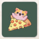 Custom Kawaii Cat Hugging Pepperoni Pizza Cartoon Rechteckiger Pappuntersetzer