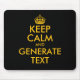 Custom keep calm mouse pad print generator. Create your own funny meme. Modern typography with yellow crown template. Personalize with custom text and colors.