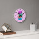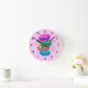 Custom kitchen wall clock with French macaron art. Personalized kitchen wall clock with colorful macaroon drawing. Customizable pink background color. Cute decoration gift idea for pastry chef, cook, mom, mother, aunt, sister, daughter, wife, friend, bakery shop owner, sweets lover etc. Square or round version. Add your custom quote or name. Pretty watercolor drawing of macaron cookies stacked in a tower.