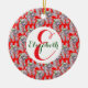 Niedliche Aussie Summer Christmas Koala mit Monogramm Ornamente schmücken bezaubernde Aquarellfarben auf festlich rotem Hintergrund, umgeben von australischer Flora. Dieses festliche und spielerische Ornament wurde von Jo Story of Sketchbook Designs entworfen und verleiht Ihrem Weihnachtsbaum eine personalisierte Aussie-festliche Touch. Ideal für Koala- und Wildtierliebhaber, bringt es einen personalisierten Charme in Ihre Urlaubsatmosphäre und macht ein individuelles Geschenk für Weihnachten oder besondere Anlässe.