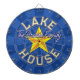 Custom Text Lake House Ultramarine Blue Color and Yellow Star Design Dart Board - Personalize all text to your liking!