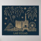 Dieses Kunstwerk illustriert die Skyline von Las Vegas Strip in einem edlen Stil der Goldline-Kunst, Set vor einem tiefen Marinesturm mit leuchtenden Feuerwerken, die das Nachtleben und die Unterhaltung der Stadt feiern. Ikonische Sehenswürdigkeiten wie die Pyramide von Luxor, die Nachbildung des Eiffelturms von Paris Las Vegas, das Resort von Mandalay Bay und das High Roller Ferris Wheel sind alle mit detaillierten architektonischen Konturen vertreten. Mit seiner puristischen minimalistischen Komposition, dem zeitgenössischen Retro-Einfluss Mitte des Jahrhunderts und der eleganten Marine- und Goldpalette verbindet dieses Stadtbild die Energie des Nachtlebens von Sin City mit der Eleganz klassischer amerikanischer Reisekunst. Dieses Kunstwerk bietet auch benutzerdefinierte und personalisierte Textoptionen. Der vorhandene Text ist vollständig editierbar und anpassbar, sodass es einfach ist, ein einzigartiges Las Vegas-Souvenir für jeden Anlass zu erstellen.