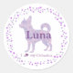 This pastel lavender chihuahua silhouette design with the phrase 'I love my chihuahua.' is a customizable Sticker gift perfect for dog lovers. Personalize with your name to create a unique pastel-colored sticker that makes a thoughtful present for friends, family, coworkers, or any pet lover. Great for everyday use, birthdays, or as a pastel accent at home. Perfect pastel gift for chihuahua lovers – customize with your name today!