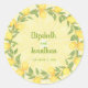 Elegante Zitronenscheibe mit Zitrone und Blattkranz. Fügen Sie Ihr Hochzeitdatum und Ihre Namen für das perfekte Briefumschlag Etikett oder auf den Paketen hinzu.