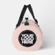 Custom Logo cute feminine girly trendy chic blush pink Name Company Promotional Fitness Duffle Bag featuring a simple and modern template with your business logo, photo or image and your custom name or any personalized text. Perfect for fitness, yoga, workout, exercise. Add your name, website or social network address. No minimum order.