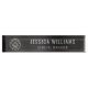 Elevate your workspace with this sophisticated desk sign design, featuring a luxurious faux brushed black metallic background that exudes prestige. The design incorporates a prominent space on the left for your custom logo, beautifully balanced by a crisp, modern sans-serif typeface presenting the name and title. This clean and distinguished aesthetic creates a lasting impression, adding a touch of refined class to any office environment.