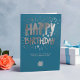 Spaß moderne Doodle handgeschriebenen Stil warm und freundlich Business Happy Geburtstag Grußkarte mit Imitaten silber Farbe handgeschriebenen Text auf einem aquamarinen Hintergrund. Bitte beachten Sie, dass das Silber in diesem Design ein flach grauer Farbdruck ist und keine metallische Folie ist. Ein 3D-Effekt ist auch ein Farbdruckdesign ohne echten 3D-Effekt. Ändern Sie das Bild "Ihr Logo hier" mit Ihrem Logo oder entfernen Sie es, wenn Sie gewollt, es ohne Logo zu verwenden. Vergessen Sie nicht, auch die Vorderseite und den Innentext anzupassen. Die aquamarine Hintergrundfarbe ist individuell anpassbar und kann in jede andere Farbe angepasst werden, die Ihrem geschäftlichen Farbschema entspricht.