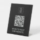 Modern white display sign with QR code and customizable logo area, ideal for businesses directing customers to their website.