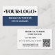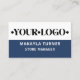 This stylish dark blue business card is easily customizable with your QR Code, logo, name, and details.