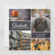 Teilen Sie Ihre Begeisterung für die besondere Leistung Ihres Absolventen. Benutzen Sie diese leicht zu bedienende Vorlage für die Abschluss-Anzeigenkarte mit vier Bildpunkten und beinhalten die Klasse 2020, den Schulnamen und den Namen Ihres Absolventen. Eine quadratische Karte, die an einen quadratischen Graduiertendeckel und einen Kalkboard-Hintergrund für die Klasse erinnert, das Gefühl der Schule.