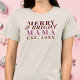 Personalisiertes, individuelles Mama T Shirt zum Tragen in den Winterferien, rund um Weihnachten. Feierlich, glücklich, fröhlich, neue Mutter, Mama. Traditionelle Merry & Bright fröhliche Formulierung in einer modernen minimalistischen ästhetischen Interpretation. Trendfarben, Maron, Bordeaux und gedämpftes Rosa für eine klassische redaktionelle Typografie. Fügen Sie ein individuelles Datum für das Jahr hinzu, in dem sie Mutter wurde, wenn die Mutterschaft beginnt. Gemütliches, komfortables und stilvolles Beisammensein zum neuen Mama-Kleiderschrank. Eine tolle Geschenkidee für sie nach der Geburt, als neue Baby-Ankündigung, lr vorher, als Baby-Dusche nachdenklich Geschenk. Die neuen Mütter werden sich freuen, mit dem neuen Familienmitglied das erste Weihnachtsfest zu feiern. Sehr erschwinglich. Ein Geschenk unter 30 Dollar für junge Mutter.