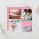 Stellen Sie Ihr Freudenbündel der Welt mit unserer Custom Marble Pink gesegnete Foto Collage Baby Girl Announcement Card vor. Diese elegant gestaltete Flachkarte ist die perfekte Möglichkeit, die Geburt Ihrer Tochter anzukündigen und Ihre freudigen Neuigkeiten mit Familie und Freunden zu teilen. Personalisieren Sie diese Karte mit einer Auswahl der Fotos Ihres Mädchens, und erstellen Sie eine wunderschöne Collage, die das Wesen Ihres Neugeborenen einfängt. Das einzigartige Layout erlaubt es Ihnen, verschiedene Momente und Ausdrücke zu präsentieren und diese Ankündigungskarte in einen hochgeschätzten Sake zu verwandeln. Set vor einem stilvollen Marmorhintergrund, das Skriptwort "Gesegnet" fügt eine Touch von Anmut und Eleganz hinzu. Ergänzt wird dies durch einen rosafarbenen Block mit Geburtsdatum, Geburtsdaten und Namen Ihres Babys, was die Ankündigung nicht nur schön, sondern auch informativ macht. Unsere Custom Marble Pink Blessed Baby Girl Announcement Card ist mehr als nur eine Geburtsankündigung; es ist eine Feier Ihrer neuen Ankunft, eine Möglichkeit, Ihr Glück mit denen zu teilen, die Sie Liebe. Es ist eine nachdenkliche und elegante Art, Ihre Tochter Ihren Freunden und Ihrer Familie vorzustellen. Herzlichen Glückwunsch zu Ihrem Neugeborenen, ein echtes Bundle der Freude! Diese Ankündigungskarte ist der perfekte Weg, um die gesegnete Nachricht zu teilen und eine bleibende Erinnerung an diese besondere Zeit zu schaffen.