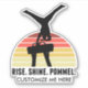 Dieser coole Herrengymnastikaufkleber verfügt über einen männlichen Gymnast in einem Handstand auf einem Pommelpferd vor einem schönen Sonnenuntergang. Das komische Zitat lautet RISE SHINE POMMEL. Passen Sie mit einem Fitnessraum oder Namen an.