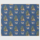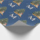 Custom Mercury Christmas Monogram Tiger & Tree Blu Geschenkpapier