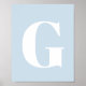 Custom Mid Century Retro Letter Initial Icy Blue Poster