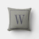 Das klassische Kissendesign mit einem gerahmten modernen personalisierten mit Monogramm Single, der in dunkelblau auf einem rustikal grünen, texturierten Hintergrund anfängt.