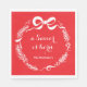 Personalize these unique festive napkins with your name or custom text. I drew the whimsical white bow, pine and berries for you. The hand drawn Christmas wreath is only found in my shop. "a Savior has been born" written in modern script is editable too. Create a unique art Christmas holiday napkin with my white doodle. The pop of bright red will look great on your Christmas dinner table. The fun trendy design matches my Christmas holiday letterpress photo card. See my collection for matching bright red mailing accessories.