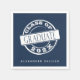 Moderne marineblaue Papierservietten weisen eine weiße "Klasse" in einem Kreis auf, der wie eine Briefmarke aussieht. Geben Sie einfach den Namen und das Abschluss des Absolventen ein. Sie können die Hintergrundfarbe ändern, indem Sie auf die Schaltfläche Anpassen klicken. In unserem Geschäft stehen Produkte zur Koordination zur Verfügung.