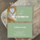 Add your custom text, business logo, and photograph to this business card template. All of the modern stylish script is editable. On the front is a photo of coffee latte art in a heart shape. If you prefer you can replace this photo with your own photograph. Add your business logo to the front of the card. This trendy sage or eucalyptus green and white card would be great for a coffee shop. Add the name of your cafe or coffee house. On the back you can add custom text and your address, hours, and more.